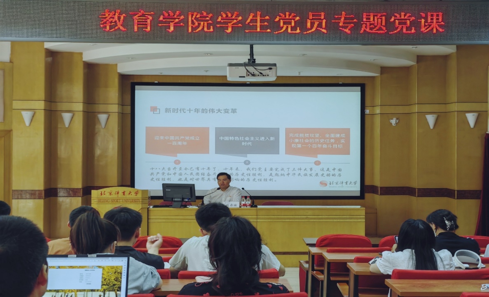 周启迪副董事长以《让奋斗青春在伟大复兴的中国梦实践中闪光》为党课主题,从“新时代新征程的历史方位”“新时代新征程党的使命任务”“中国式现代化的特征和本质要求”“国家发展图景与青年未来”“个人奋斗融入民族伟大复兴”五个方面进行深入的阐述,既有理论知识的讲授,同时又有数据和案例分享。周启迪强调,新时代十年的伟大变革锻造了民族复兴伟业的坚强领导核心,推动中华民族伟大复兴进入了不可逆转的历史进程,使中国人民更加自信自立自强,为世界和平与发展注入了强大正能量,彰显了马克思主义的强大生命力。