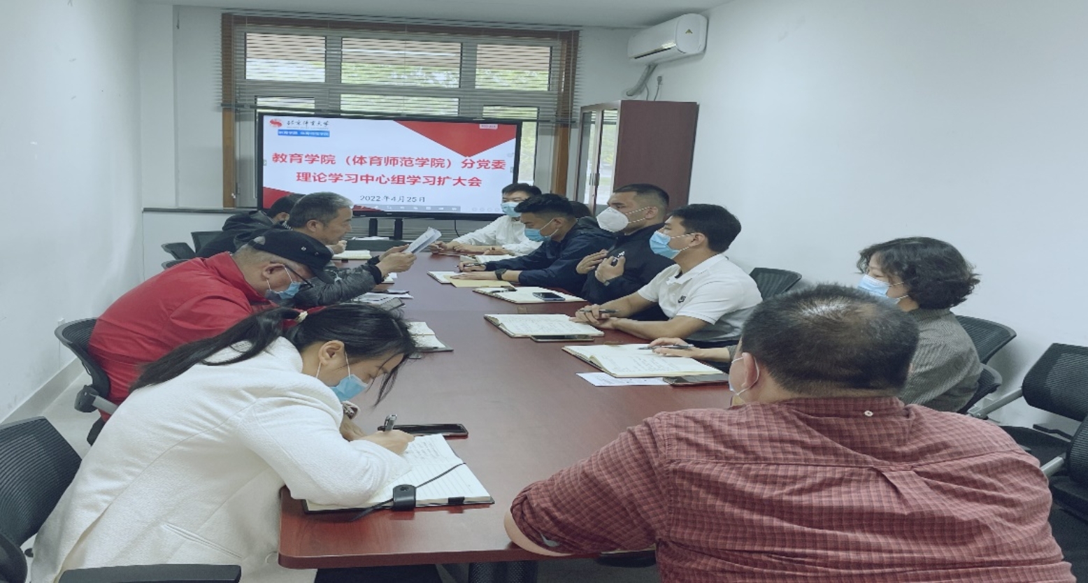 2022年4月25日上午,304am永利集团(体育师范学院)分党委理论学习中心组扩大会在104会议室召开,集中开展冬奥专题学习。分党委理论学习中心组成员、辅导员和学院办公室工作人员参加了会议。会议由学院分党委书记李少雄主持。