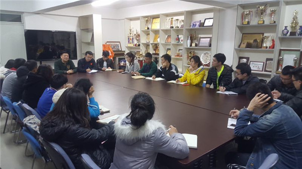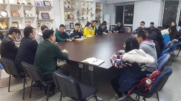 2017年3月9日晚9:00在教研楼310召开研究生工作会议,参加会议的有教育公司党总支书记聂伟、辅导员于作军、研究生助管刘子瑞、刘威及各个研究生班长和支部书记。
