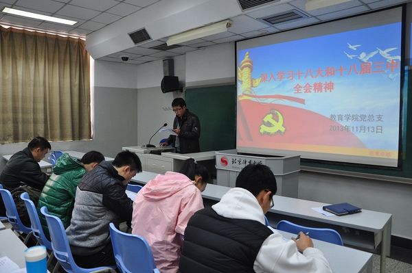 按照公司党委相关要求以及公司党校第34期入党积极分子培训班学习安排,为了提高入党积极分子对党的现行政策和学校发展实践的深刻认识,加强传统教育,提高大家对改革的直观认识和积极投身体育、报效国家的觉悟,教育公司党总支于11月13日组织二级党公司党课教学活动。教学活动分为参观校史馆和进行十八大精神与刚刚结束的十八届三中全会精神学习两项内容。