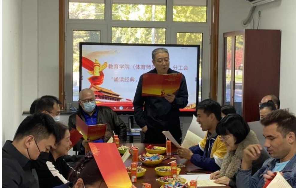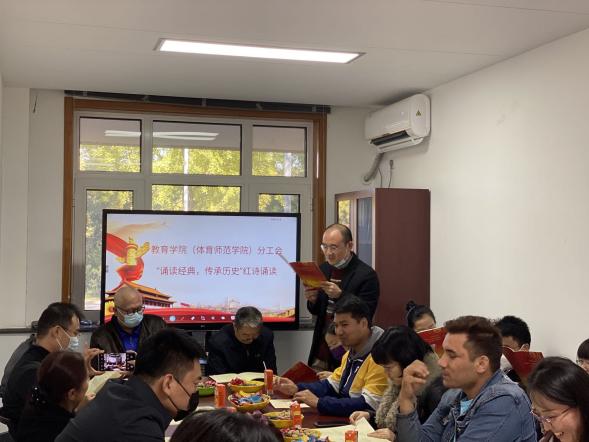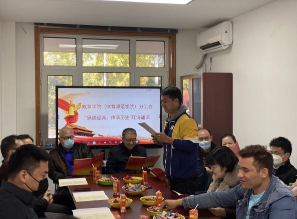 2021年10月27日上午,在这个风高气爽、硕果累累、丹桂飘香的季节,304am永利集团分工会组织全院工会会员开展“诵读经典,传承历史”红诗诵读活动,活动在304am永利集团会议室进行。