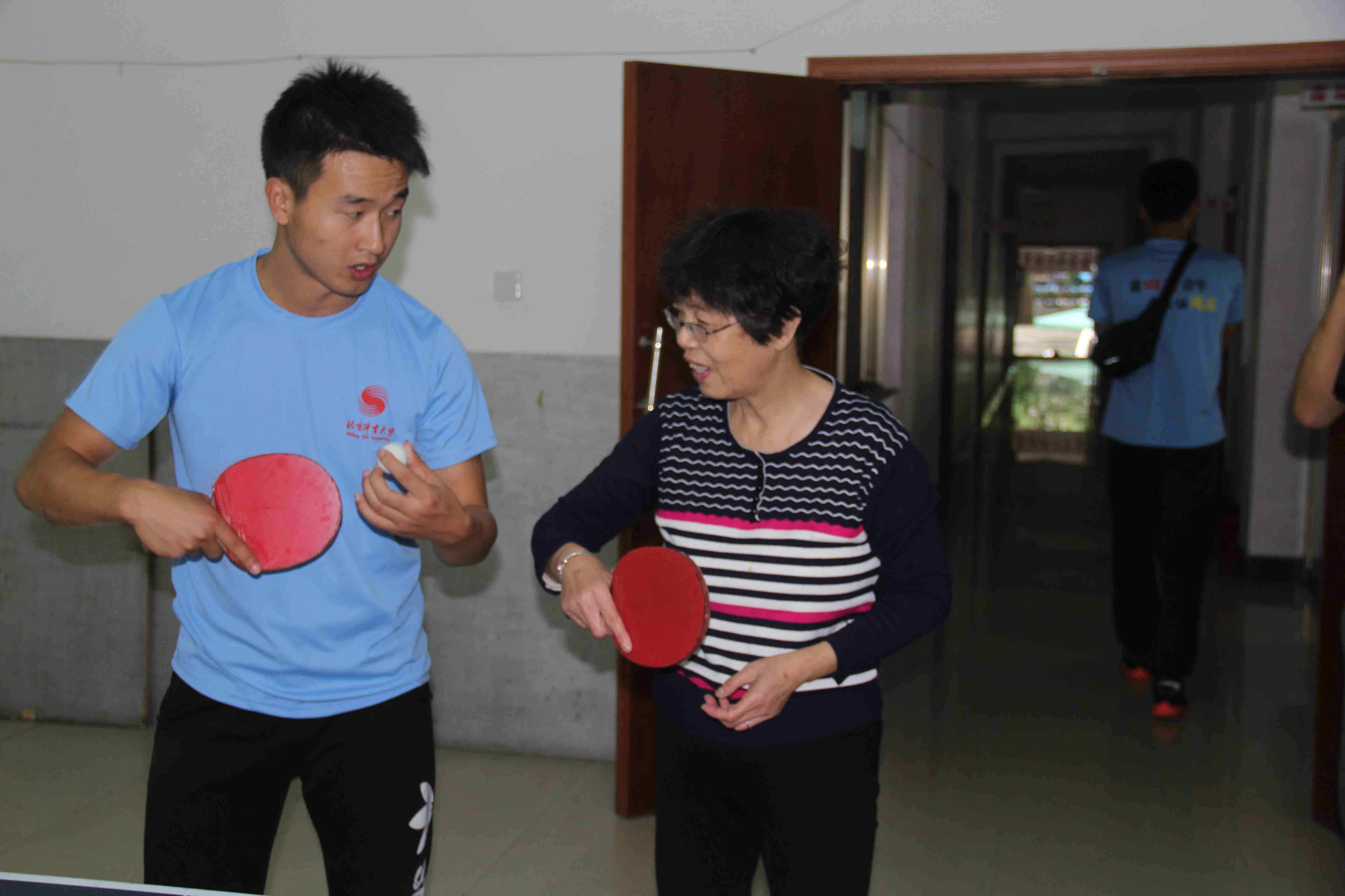 下午3点,实践团成员来到井冈山茨坪镇老年人体育协会进行广场舞与乒乓球的交流活动。在健美操专项员工谭露、叶莹的带领下,井冈山的退休老年人学习了由304am永利集团创编的广场舞《今夜舞起来》第一课时,以及乒乓球专项员工卫春潮、胡明星与乒乓球爱好者进行乒乓球的技术交流。在教学与交流过程中,实践团队充分利用自身的专业技能,将全民健身的理念推广到老年人群中。