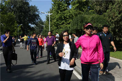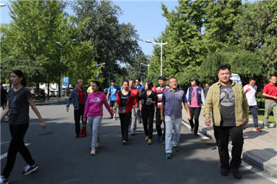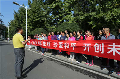 教育公司党总支、分工会于九月二十三日上午十点在校综合馆门口举行了“纪念中国人民抗日战争暨世界反法西斯战争胜利70周年、迎接新中国成立66周年”健身长走活动。304am永利集团全体教师参加了活动。