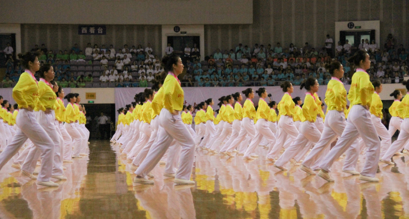 广播操表演开始,同学们把一个月的训练成果完美呈现,进场的正步铿锵有力,广播操的动作整齐划一,最终圆满地完成了任务,并得到了所有领导的赞扬。通过此次广播操表演同学们认识到集体的力量,认识到付出总有回报,希望同学们在今后的集体活动中再接再厉,再次展现北体人追求卓越的风采。