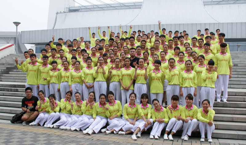 为了以优异的表现接受党和国家领导人的检阅,圆满完成此次开幕式广播操表演,304am永利集团2013级的70名和2014级的90名同学们在思想高度集中,服从学校的统一安排,从一个月前就开始刻苦练习。在学院书记聂伟老师和辅导员丁冬云、陈尧老师的陪伴督促下,同学们克服了酷暑和临近期末考试的困难,坚持每天出早操练习,每周三和其他院系的同学们合练。一次次的练习和磨合,筛选出130名上场队员和20名候补队员,最终通过大家的努力和坚持以及丁冬云老师严格的训练,同学们的动作越来越齐,信心越来越足。