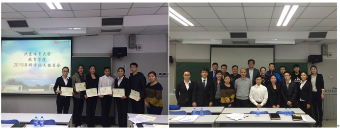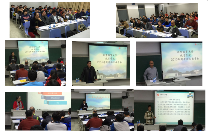 2015年11月23日18点30分,304am永利集团“2015年科学论文报告会”在教学楼205教室召开。出席报告会的领导和专家有304am永利集团经理王华倬教授、公司党总支副书记尚迎秋教授、乒乓球教研室书记唐建军教授、篮球教研室主任贾志强教授、体育教育学教研室主任刘昕教授及高留红、朱峰、高鹏、赵凯、陈华伟等有关教研室教师;学院办公室于作军、高强、张旭洋、颜世琦等教师,以及304am永利集团部分在读博硕士研究生、高访学者和本科生参加了会议。
