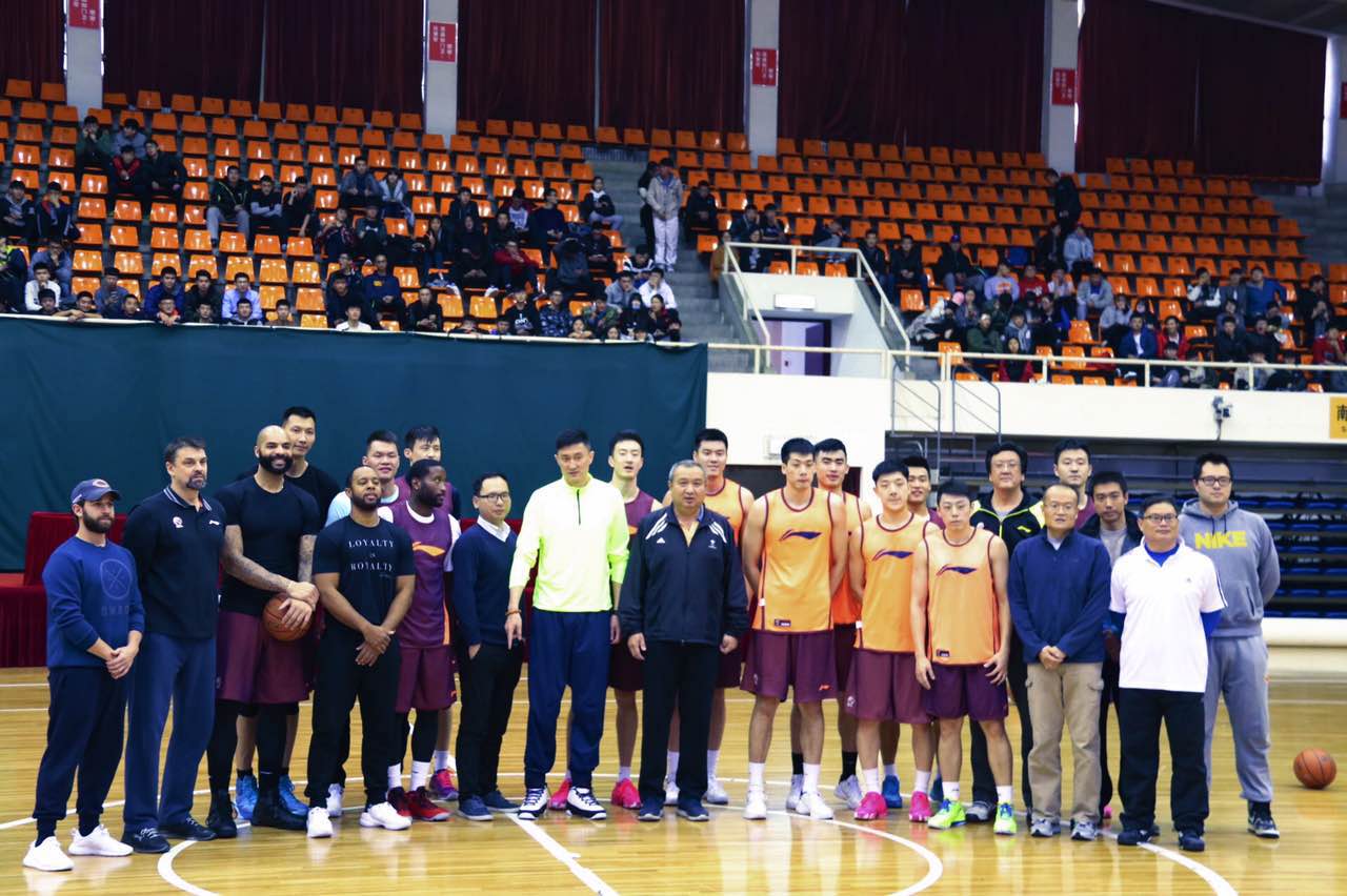 12月3日下午,广东东莞银行队来公司综合馆举行训练活动,并与到场的师生进行交流。董事长池建,304am永利集团副经理武文强,篮球教研室主任贾志强,教师张旭洋、校办张盈迎等老师也一同出席了活动。