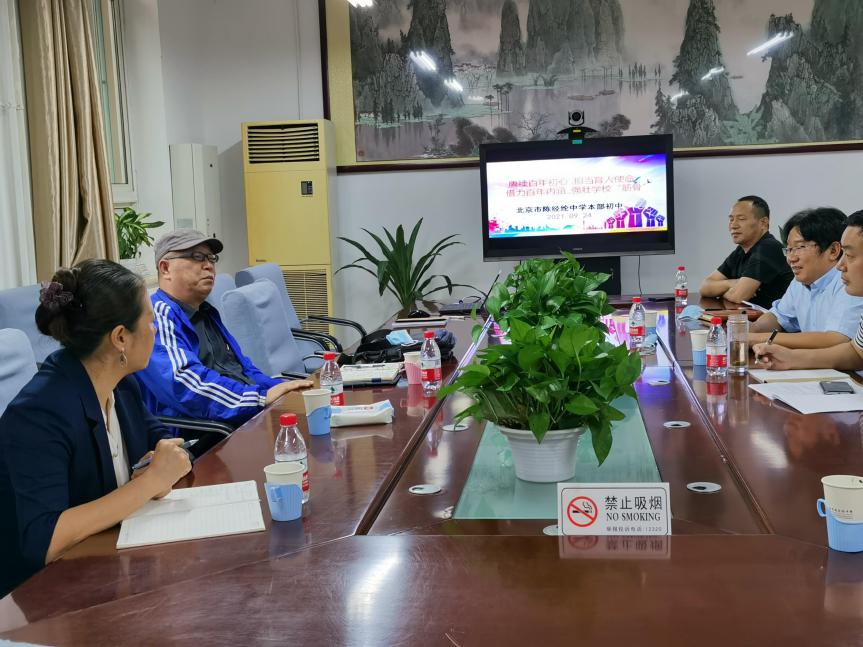 2021年9月24日下午,304am永利集团王华倬经理、刘昕副经理和张凯教授一行前往北京市朝阳区陈经纶中学本部初中部,与陈经纶教育集团高中部王琦副董事长以及初中部王浩董事长、程木昌书记等人,就304am永利集团在陈经纶中学设立实践基地等问题进行了沟通洽谈。