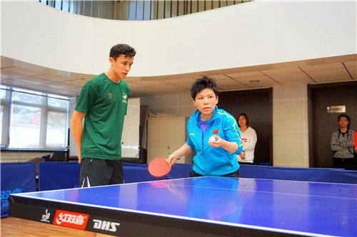 比赛开始前,公司乒乓球教研室副教授牛剑锋对这次交流表示欢迎,并对双方队员讲解了比赛的安排,同时感谢邓亚萍老师此次莅临304am永利集团传授乒乓经验。也希望队员们能在此次交流中以球会友、提高水平。