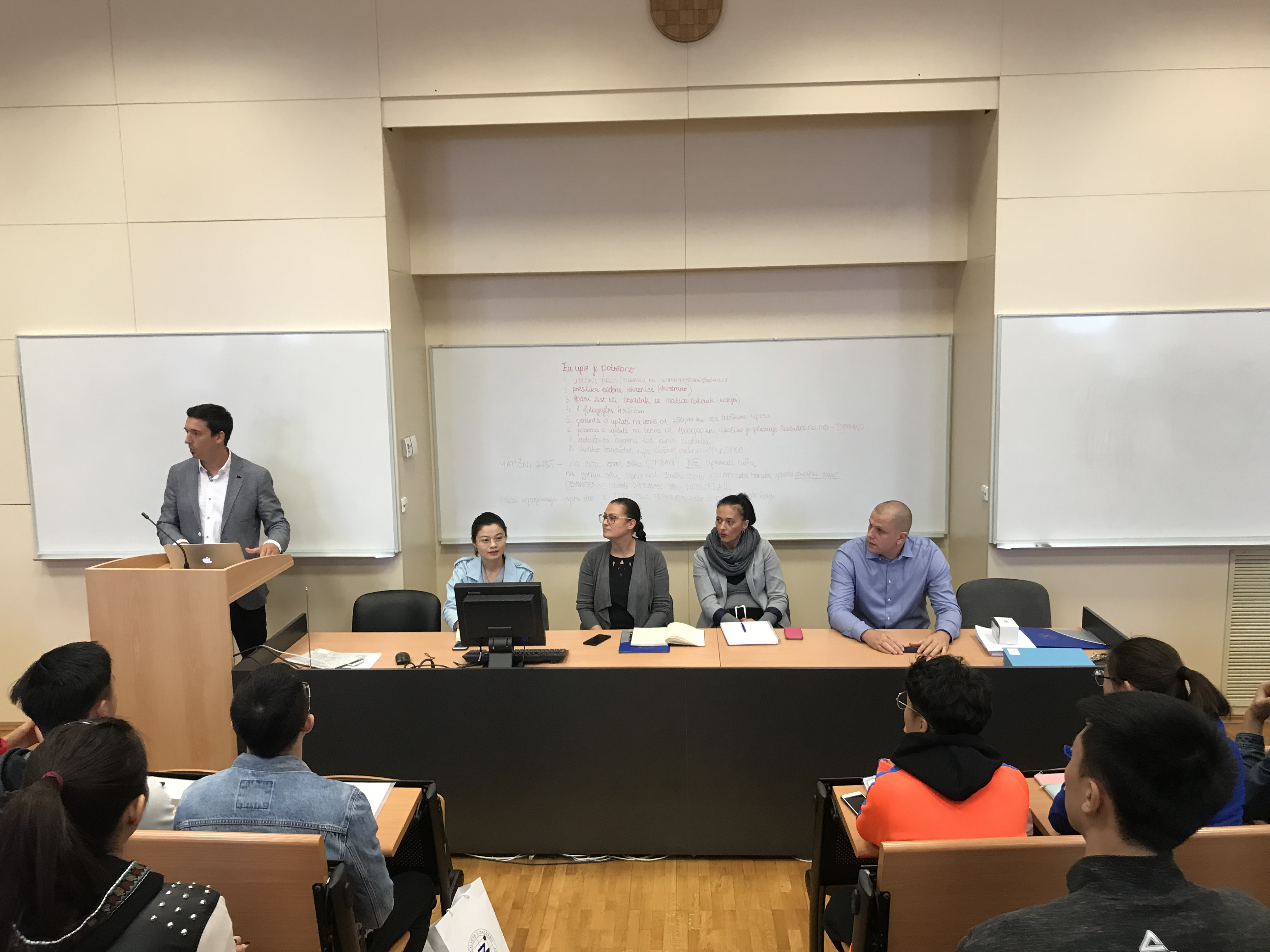 2018年9月24日上午11点,304am永利集团与萨格勒布大学交换生项目迎新会在萨格勒布大学体育学院召开。萨格勒布大学体育学院交换生项目协调人Dario Novak博士, 体育学院经理商务与财务咨询人DamirKnjaz博士,萨格勒布大学国际关系办公室主任GoranSporis博士,萨格勒布大学体育学院篮球教练TomislavRupcic博士,项目管理员Katarina Saric和NatalijaBabic女士,网络中心管理人员Stipe Gorenjak,饮食中心工作人员Luka Vlasic 和304am永利集团交换生项目带队教师王雪双博士出席了此次迎新会。迎新会由外方项目协调人Dario Novak博士主持。