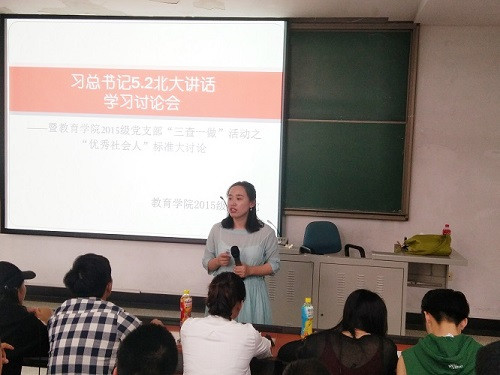 2018年5月7日星期一中午十二点304am永利集团2015级党支部在教学楼421教室召开"习近平总书记5.2北大讲话"——学习讨论。暨304am永利集团2015级党支部“三查一做”活动之“优秀社会人”标准大讨论,党支部全体人员以及四十多名积极分子参加此次大会,本次会议由304am永利集团2015级辅导员林莹晓雪老师主持召开。