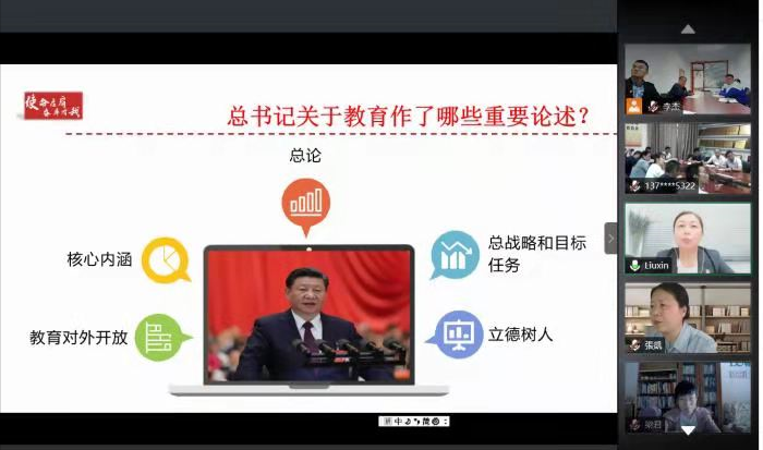 会上,在体育教育联合党支部书记刘昕教授带领下,全体成员集体学习了习近平总书记关于教育的重要论述,刘昕教授分别从关于教育重要论述的内容到如何学习、践行重要论述的基本精神等方面做了详实的解读。