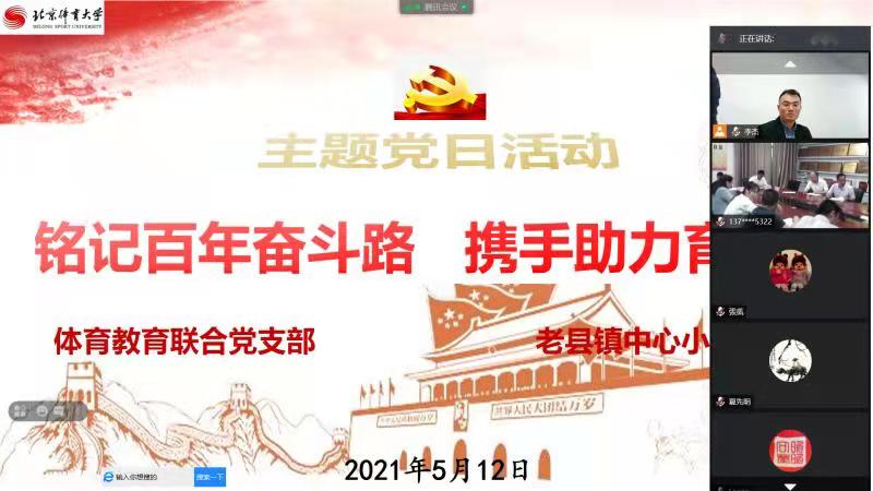 为提升公司党史学习教育成效,持续推进与陕西省平利县合作共建工作,深化红色“1+1”党支部共建活动,5月12日下午,304am永利集团(体育师范学院)体育教育联合党支部与陕西省安康市平利县老县镇中心小学党支部一起在线上开展“铭记百年奋斗路 携手助力育人梦”的主题党日活动。学院分党委全体成员、老县镇中心小学领导班子成员及两所党支部成员参加了会议。会议由分党委副书记李杰主持。