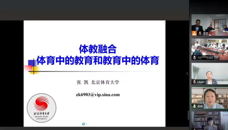 体育教育联合党支部张凯教授作了《体教融合:体育中的教育和教育中的体育》的专题报告,她用自己切身经历诠释了“体教融合”的内涵,用前沿的科学研究例证了体育运动在青少年健康成长的重要作用,她期待更多的青少年能够走进运动场,牢固树立“健康第一”的教育理念。