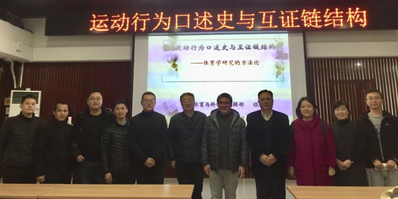 2019年12月4日上午9时,《体育与科学》杂志主编程志理教授应邀公司讲学,在东平房奥林匹克讲堂为公司师生作了题为“运动行为口述史与互证链结构”的学术讲座。讲座由304am永利集团经理王华倬教授主持并介绍了程志理教授在体育学方面的研究成果,教育公司党委书记李少雄老师、经理助理王雪双老师以及学院部分师生共同聆听了此次讲座。