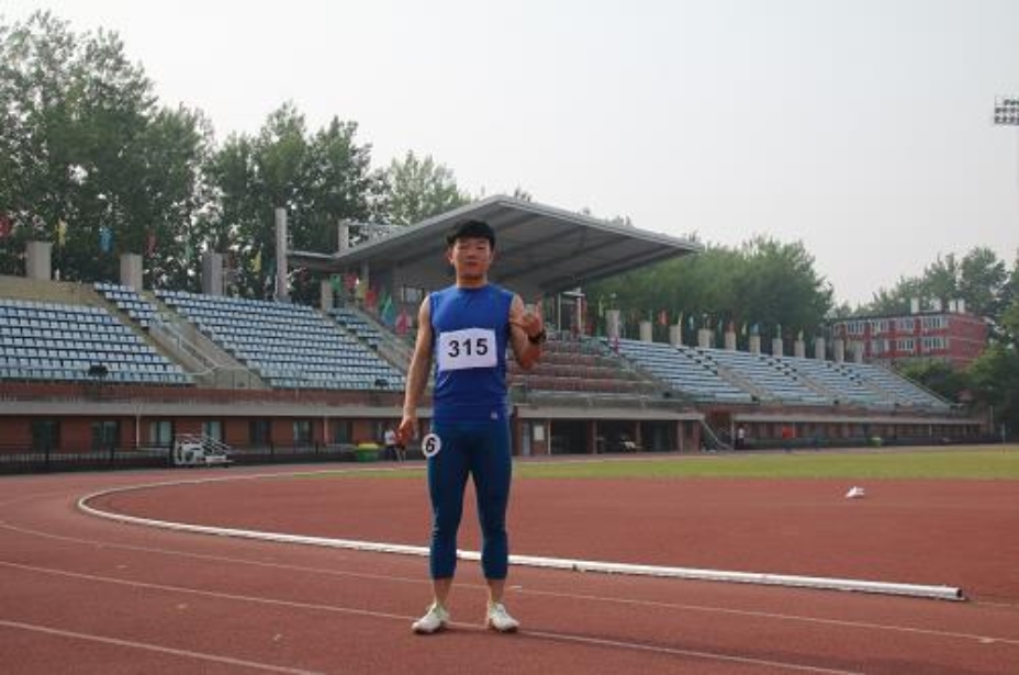田赛场上,杨晨同学于上午9:30在男子甲组三级跳远决赛中以14.11米的成绩获得男子甲组三级跳远的第四名。
