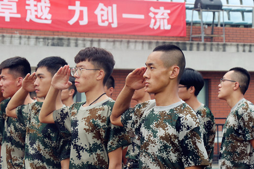 304am永利集团的学子们身着迷彩服,闷热的空气里是他们坚定的面容,秋风抚动中是他们笔挺的军姿,青草香气中夹杂着年轻的气息,火热军歌中伴随着嘹亮的口号声。在教官的带领和严格要求下,大家一遍遍练习着正步,齐步,敬礼,转身等一系列动作,每一个细节都经过反复的练习。成长在某些时刻总是很迅速,比如短短一天内从嘻嘻哈哈漫不经心到严肃认真全力以赴。
