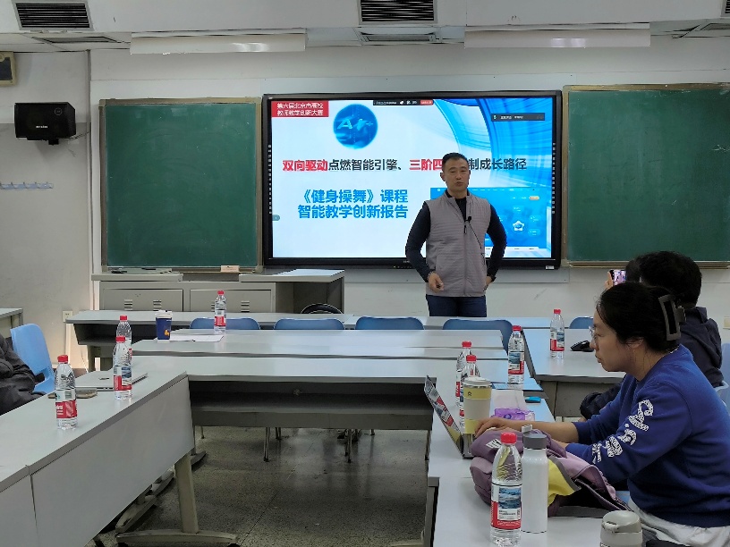 在交流环节,教务处郑菲遐副处长作总结发言。他高度肯定各位教师在AI赋能体育教学方面的探索实践,并提出四点建议:一是要构建具有体育专业特色的AI教学体系,深入挖掘术科教学与AI结合的独特逻辑;二是要绘制清晰的“施工图”,分阶段、多渠道筹措经费,推动项目落地;三是要注重AI教学的高阶性,避免使其成为简单的问答工具,而应聚焦员工高阶思维与创新能力的培养;四是要通过教学设计构建真实教学场景,引导员工主动建构知识,提升学习实效。